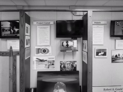 A display case honoring Ralph D. Belanger, the assistant flight engineer on the The Great Artiste, a B-29 that accompanied Bockscar to Nagasaki. Belenger was actually part of the crew of Bockscar but he, along with his captain Frederick C. Bock and the entire crew, traded places with the The Great Artiste crew due to instrumentation issues. Thus, instead of the The Great Artiste dropping Fat Man, it was dropped by Bockscar. Belanger can be seen in the portrait in the center of the group image, with his crew.