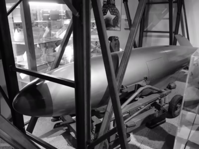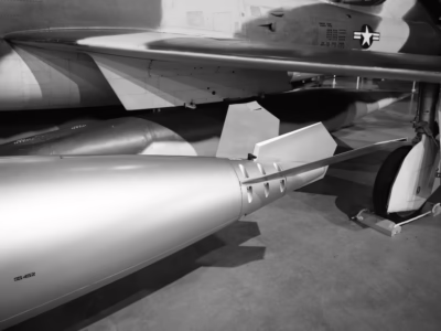 This image, from the National Museum of the US Air Force, in Dayton, gives you a sense of the size of the bomb in relation to the aircraft. The bomb is certainly big but does appear to be about the same size as a large external fuel tank. In use the pilot would, in an attempt to escape from the blast, “drop” the bomb with an upward flying maneuver called “toss bombing” where the plane would approach the target at a low altitude and then would suddenly climb and launch the bomb, sending it higher after its release and then letting it arc down, gaining precious seconds to put distance between the aircraft and the explosion. A second possible maneuver, which probably sounded as crazy to the pilots at the time as it does today, was to launch the bomb even higher on that same upward flying maneuver so that the bomb actually traveled backwards from the previous direction of the plane. Crazy stuff, indeed.